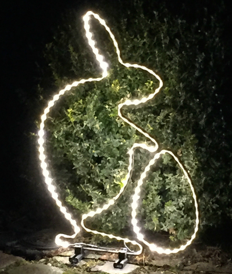 Aus Baustahl geformter Osterhase mit LED-Strips